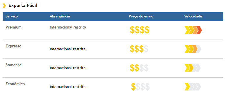 Fonte: https://www.correios.com.br/enviar-e-receber/exportacao/precos-e-prazos
