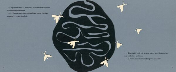 Esta história já conhecida nas falas de Ailton Krenak chega agora em formato de livro ilustrado para pequenos e grandes leitores. Com artes encantadoras feitas por Rita Carelli a partir de recortes e colagens, a narrativa nos convida a refletir sobre as atitudes que tomamos enquanto humanidade e sobre o poder das ações das crianças.